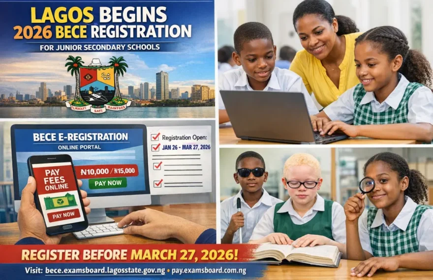 The Lagos State Government has officially announced the start of registration for the 2026 Basic Education Certificate Examination (BECE) for public and private Junior Secondary Schools (JSS) across the state. This exercise is compulsory for all eligible JSS 3 students who will be sitting for the examination. Registration will run from Monday, January 26 to […]