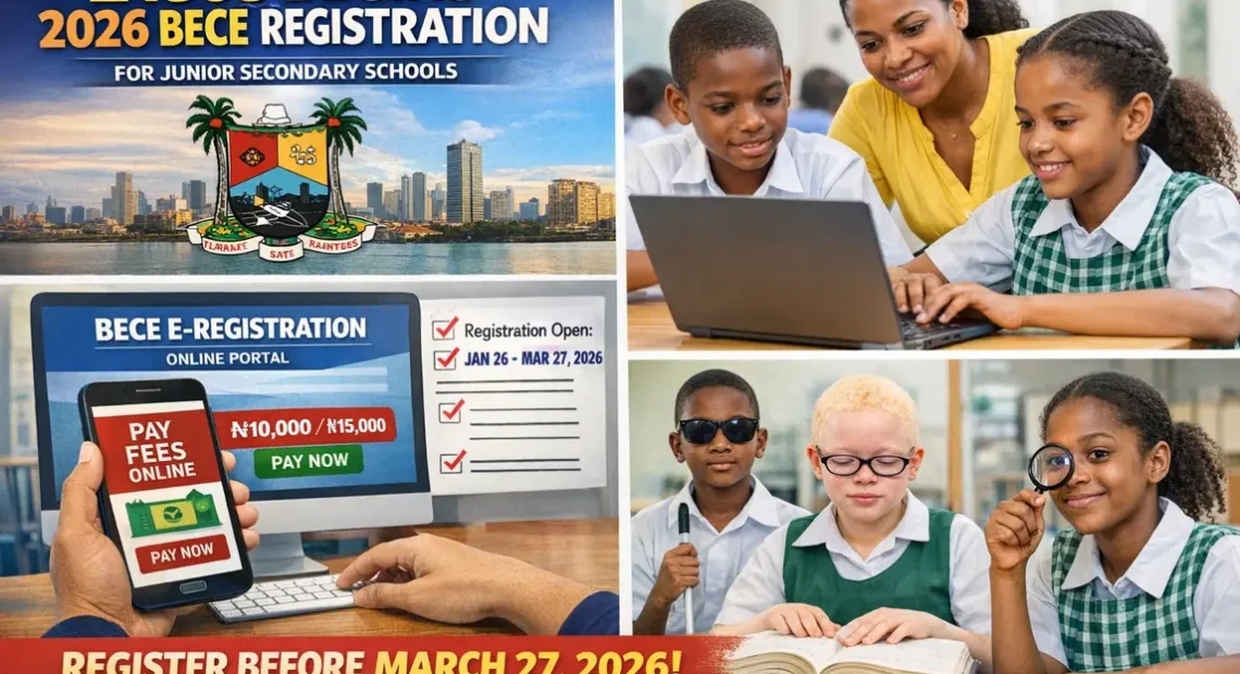 The Lagos State Government has officially announced the start of registration for the 2026 Basic Education Certificate Examination (BECE) for public and private Junior Secondary Schools (JSS) across the state. This exercise is compulsory for all eligible JSS 3 students who will be sitting for