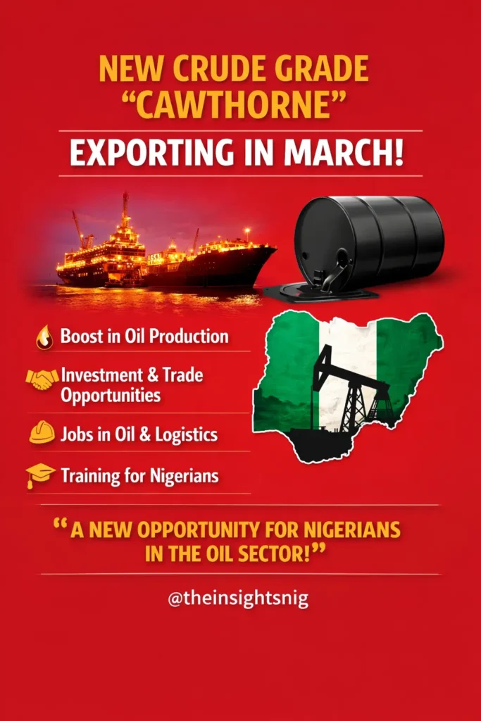 The Nigerian National Petroleum Company Limited has announced that Nigeria will begin exporting a new light, sweet crude grade called Cawthorne in March. This move aims to boost oil production, increase exports, and strengthen Nigeria’s position within the Organisation of the Petroleum Exporting Countries as it seeks higher production targets.